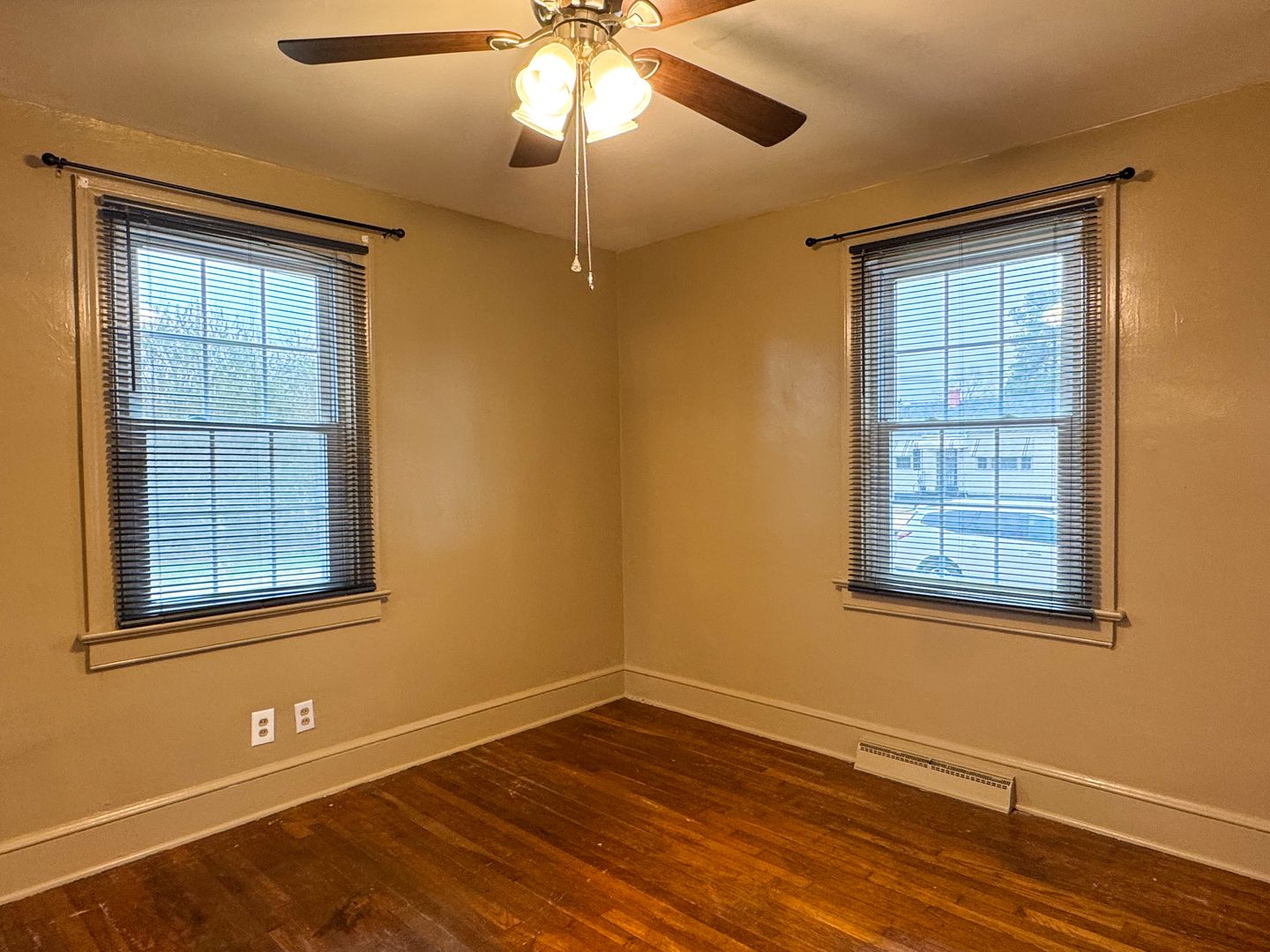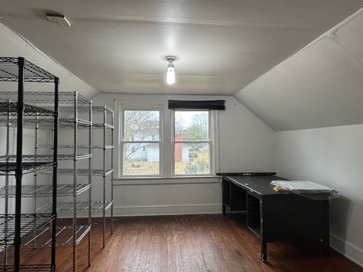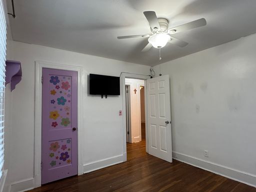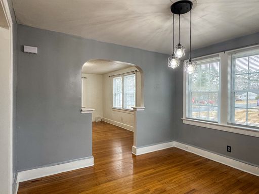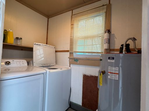 Welcome home to this charming 3-bedroom, 1-bath house located on a corner lot with a large yard to enjoy. Inside, you’ll find original hardwood floors throughout, a comfortable living room, and a separate dining area. The kitchen has been updated with new cabinets and countertops and includes a range and microhood. A refrigerator is also provided for convenience. Relax outdoors on the front porch or enjoy the back deck, which leads to a small fenced-in area. Two storage sheds are available for extra storage. The home features a utility room with a washer and dryer provided for convenience. Two wall-mounted TVs are included for tenant convenience. A walk-up attic offers tons of additional storage space. Please note, the attic is for storage only and is not climate controlled. The home has plaster walls. To prevent damage, tenants are not permitted to drill, nail, or screw into the walls. Removable adhesive products such as Command™ strips are permitted when used properly. The home has central A/C and heat, all electric. No pets. No smoking inside the home. Resident Benefit Package included in rent - ask for details!