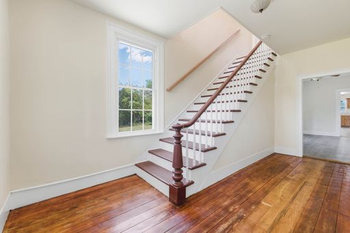 Step back in time and enjoy the beauty of this historic farmhouse built in 1885, offering 3-4 bedrooms, 2 bathrooms and approximately 2,500 sq. ft. of living space filled with character and warmth. The home features original hardwood floors, LVP, and rolled vinyl throughout. A beautiful foyer welcomes you and leads to a spacious dining room, perfect for family gatherings. The large kitchen offers ample space for a full-size table, while the front sitting room and living room provide multiple areas for relaxation and entertaining. Located on the back side of the home are two full bathrooms and a laundry room equipped with a washer and dryer for convenience use. Upstairs, you’ll find three bedrooms and a cozy sitting area at the top of the stairs, ideal for an office or reading nook. This home sits on 166 acres, with tenant use of the area surrounding the home and two sheds located in the back. The barns and remaining outbuildings are not for tenant use. Lawn care is included in the rent. Please note: the remaining acreage is leased to a local farmer and not available for tenant use. Central a/c & heat, all electric. No Pets, No smoking inside dwelling unit; No Housing Choice Vouchers per VA Code 36-96.2. Rent also includes a resident benefit package. Ask for more details.