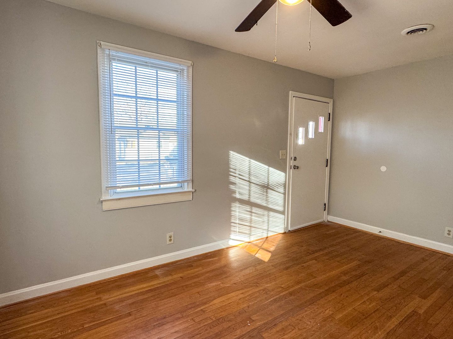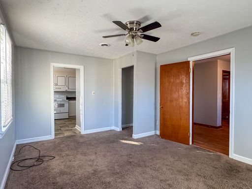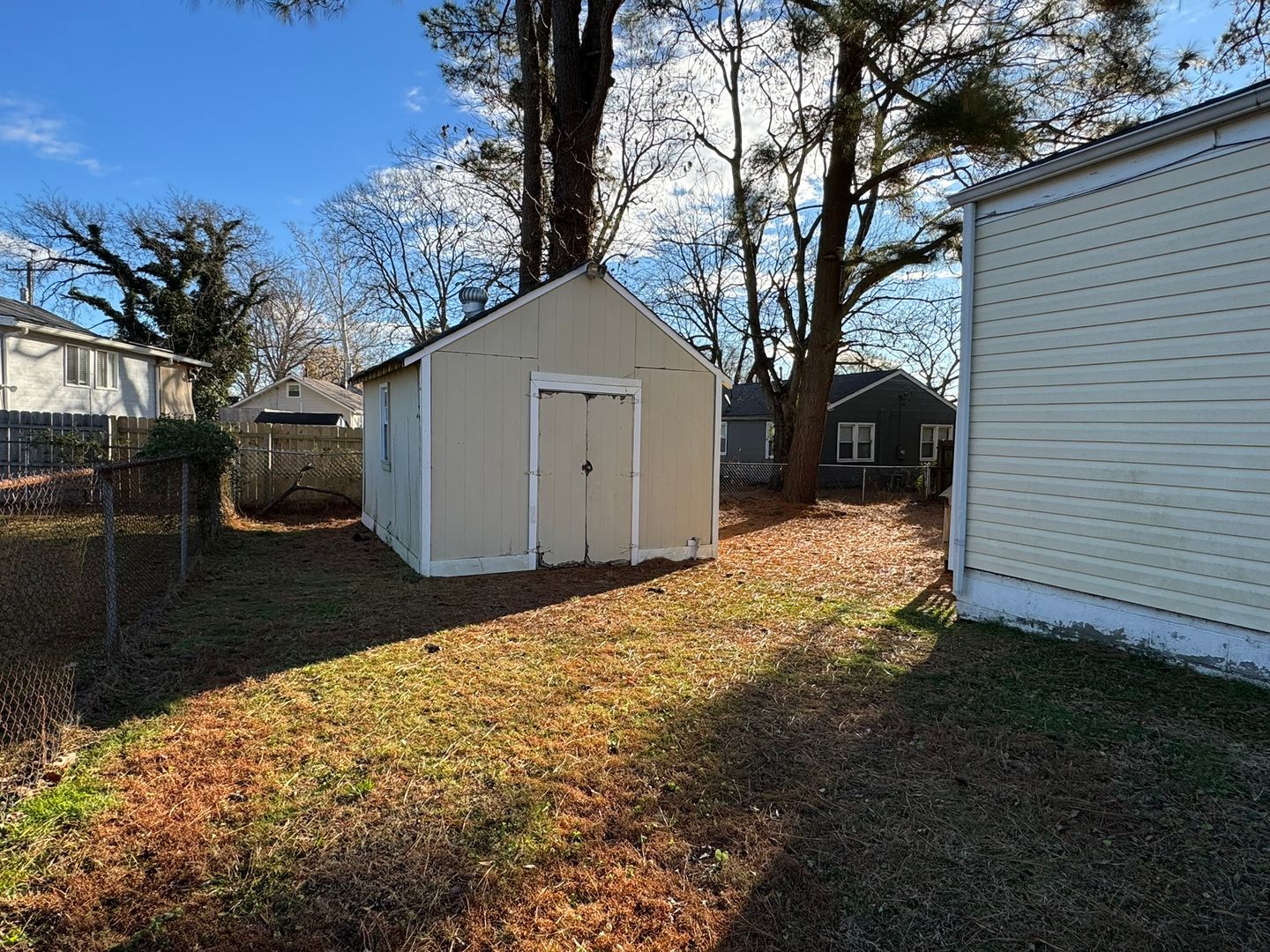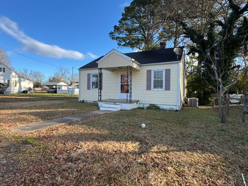 Charming 2–3 Bedroom, 1 bathroom rancher offers approximately 1,130 sq. ft. of comfortable living space. Features include a spacious living room, separate dining room, and a functional kitchen equipped with a stove and refrigerator. The kitchen also includes a convenient laundry closet, and the dining room offers a pantry for added storage. The room off the kitchen can serve as a third bedroom or a den, depending on your needs. The interior has been recently painted, and the home features hardwood floors throughout. Exterior highlights include a rear deck, fenced backyard, small attached storage closet, and a detached storage shed (as-is). The home has central A/C, gas floor furnace for heat, gas hot water, and an electric stove. No pets. No Housing Choice Vouchers per VA Code §36-96.2. No smoking inside the home. Resident Benefit Package included in rent - ask for details!